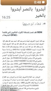 وأشار المنشور إلى إضافة المدعو عبدالله أحمد عبدالله خلف الله إلى اللائحة وهو سوداني الجنسية ، ولد 14/مارس/1978م مكان الميلاد أم درمان السودان
